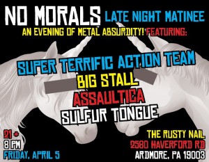 Sulfur Tongue, along with our pals in Assaultica and Super Terrific Action Team made a giant mess of all you thought was good and sacred in the world! Absolutely love playing with these guys every freakin’ time.